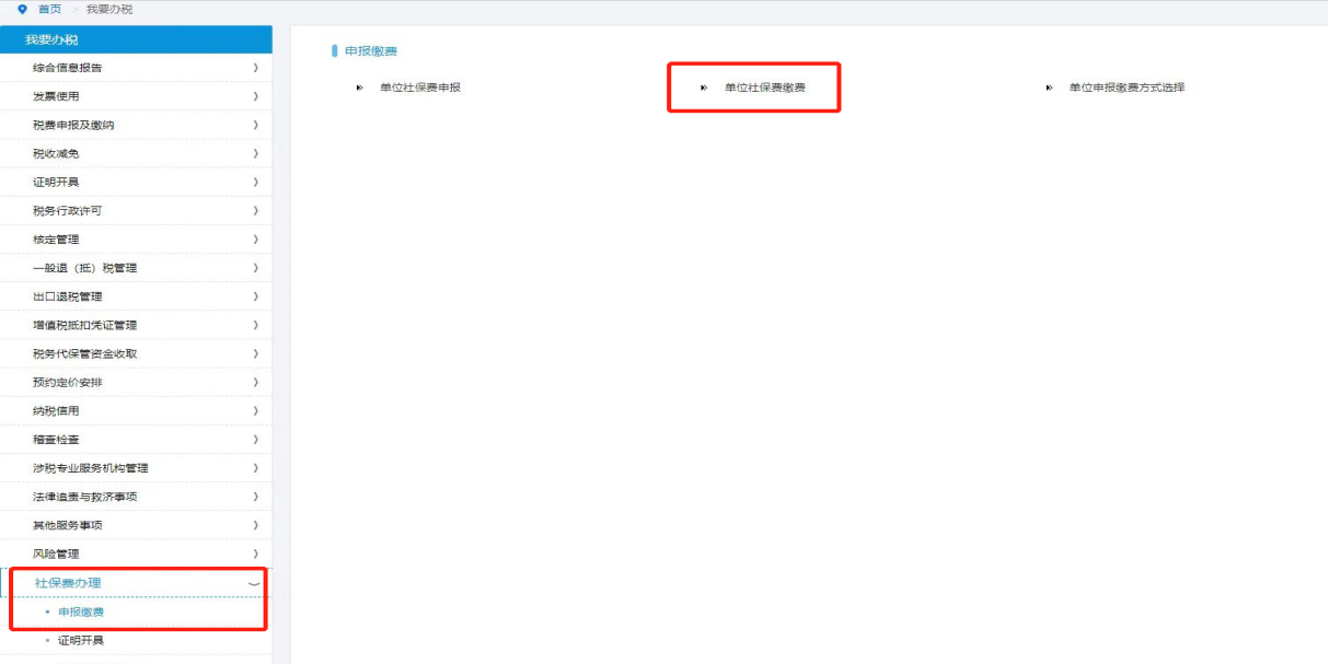 【电子税务局】—【我要办税】—【社保费办理】—【单位社保费缴费】
