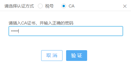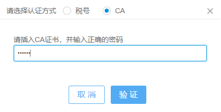 或选择“CA”验证,插入CA证书,输入正确密码后,点击“验证”。