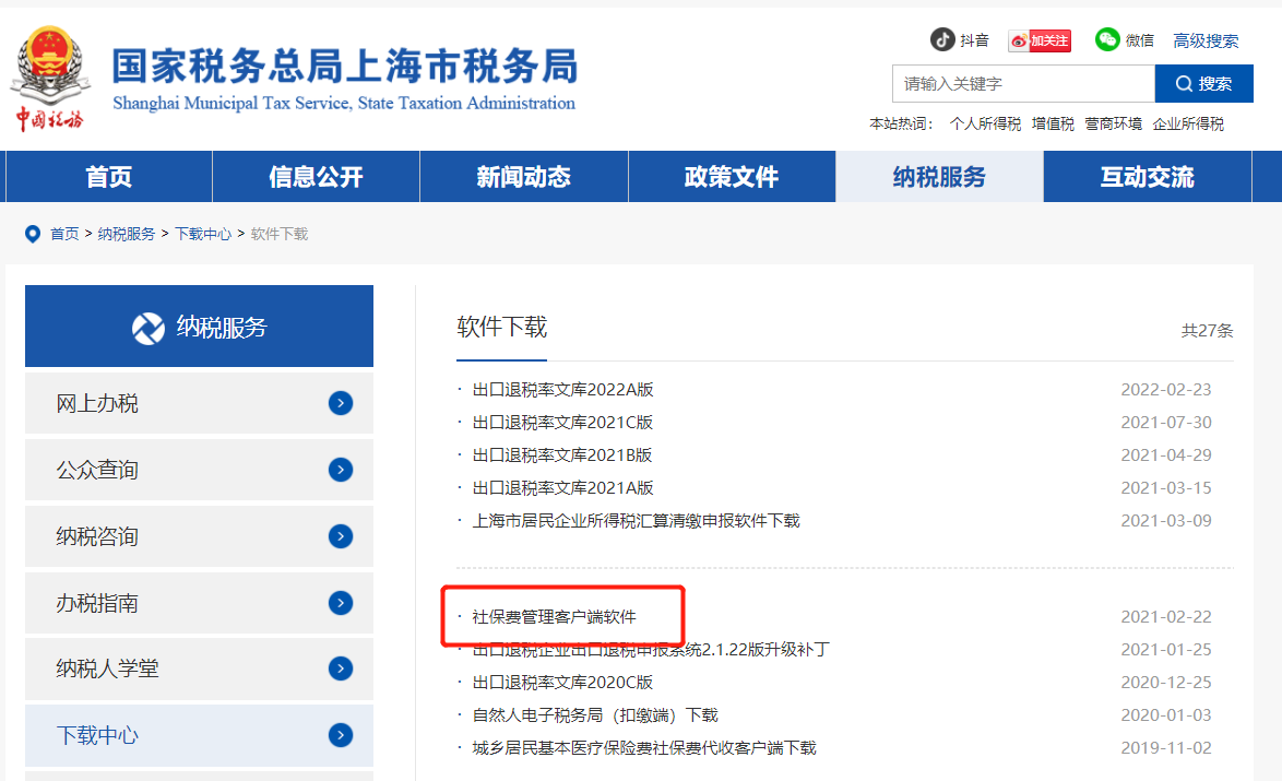 缴费人(用人单位)可通过访问国家税务总局上海市税务局门户网站首页,点击【电子税务局】,进入上海市电子税务局登录页面。或者在网页地址栏输入电子税务局网址(https://etax.shanghai.chinatax.gov.cn)。