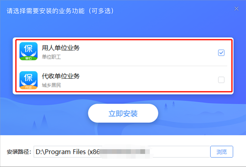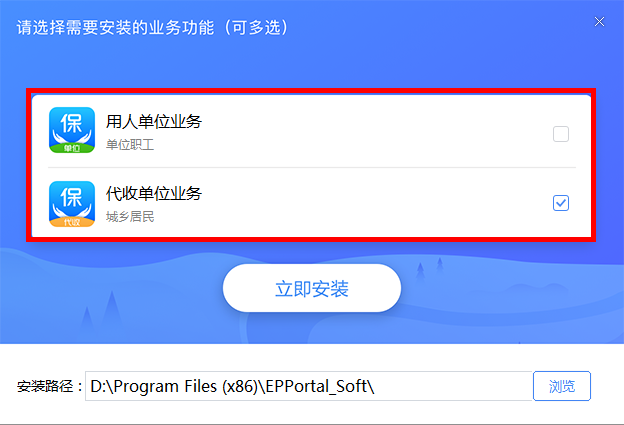 ⑤双击安装程序,选择“代收单位业务”后,点击“立即安装”。