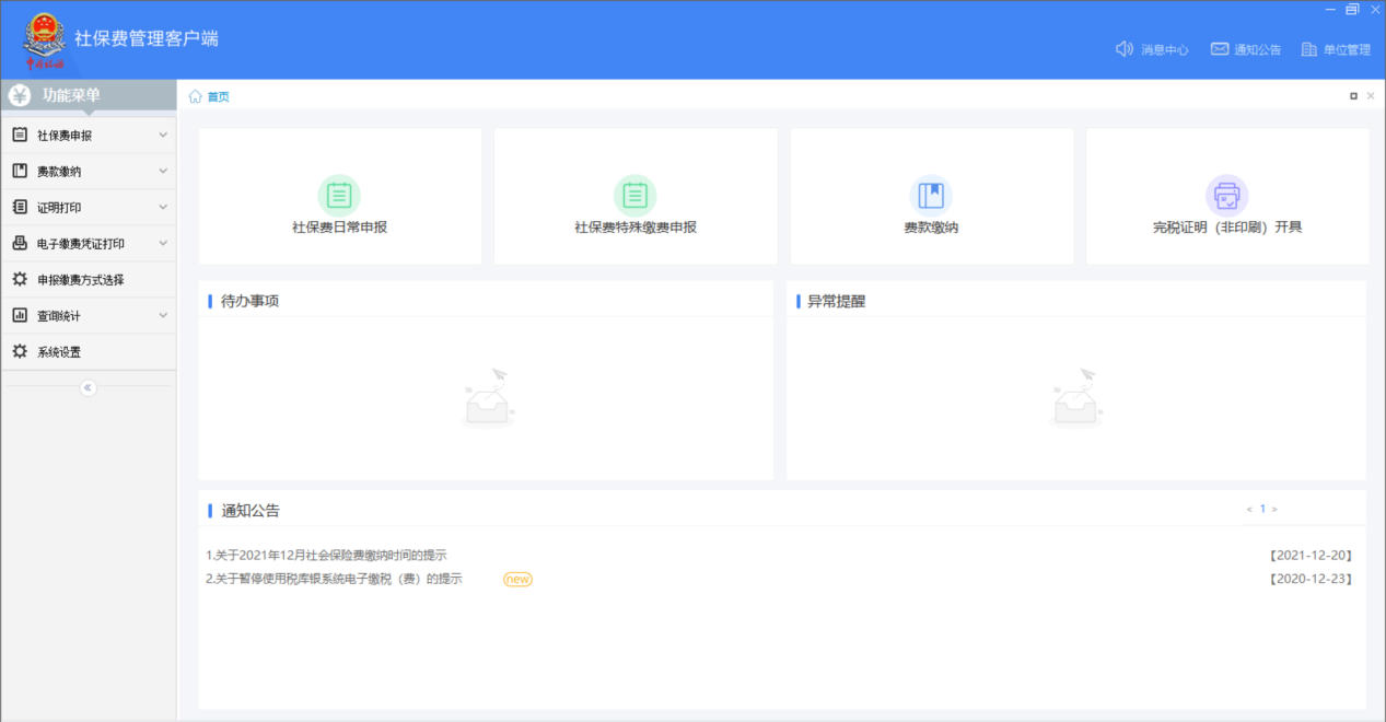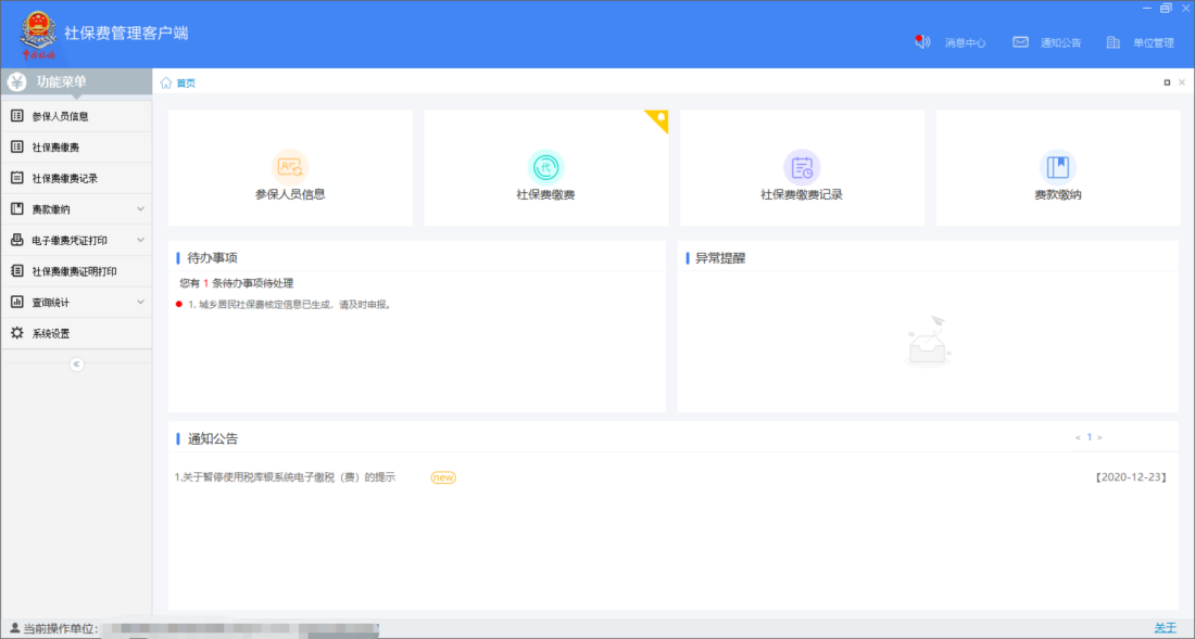 本功能适用于单位选择申报缴费方式(申报缴费方式包括“自行申报缴费”和“自动申报缴费”)。选择“自行申报缴费”方式,单位每月需自行确认征集信息并完成社保费申报缴纳;选择“自动申报缴费”方式,每月定期自动扣款,用人单位需确保所选择的三方协议账户状态正常且余额充足。
