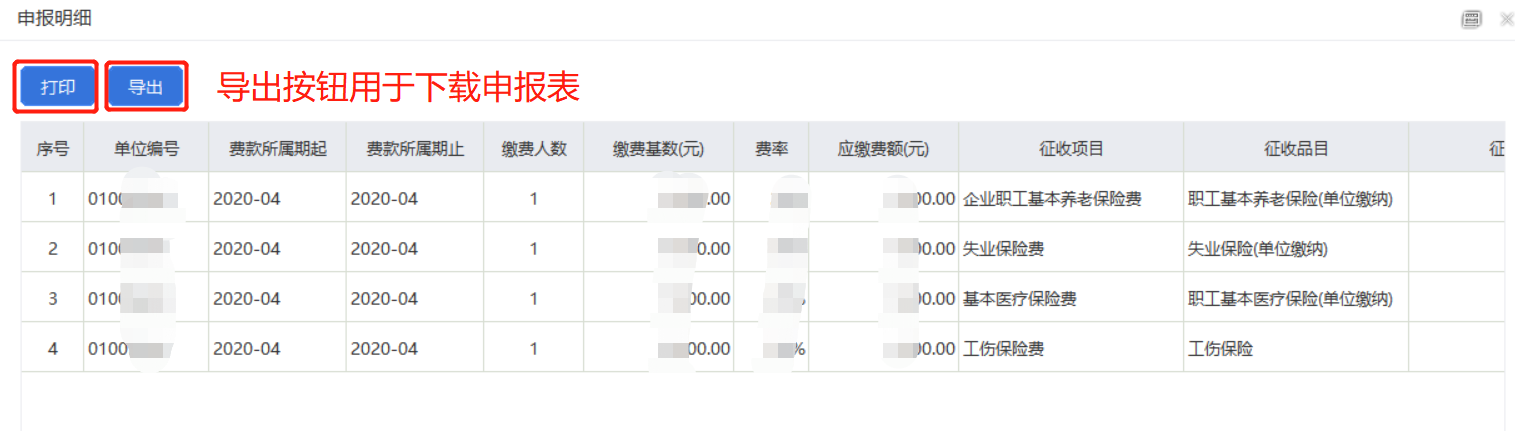 ③点击“查看申报明细”,可以查询社保费申报明细信息。