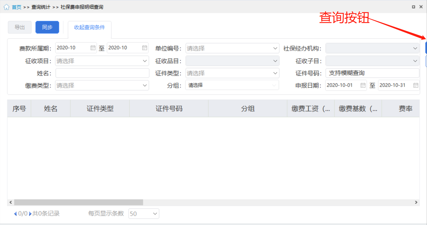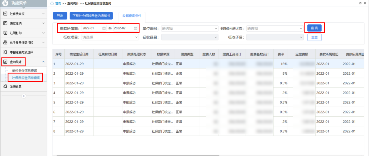 【功能菜单】—【查询统计】—【社保费申报明细查询】