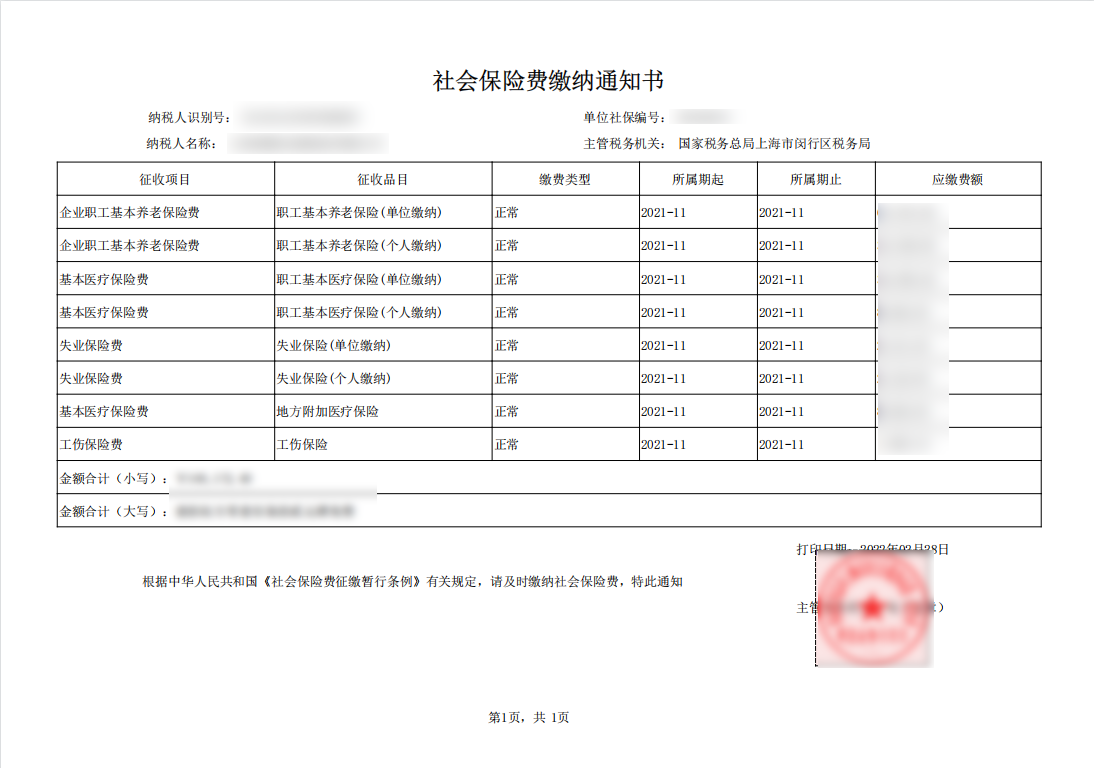 本功能支持在电子税务局上查询用人单位的缴费信息并可下载《社会保险费缴纳通知书》。社会保险费缴纳通知书上加载税务部门电子印章。