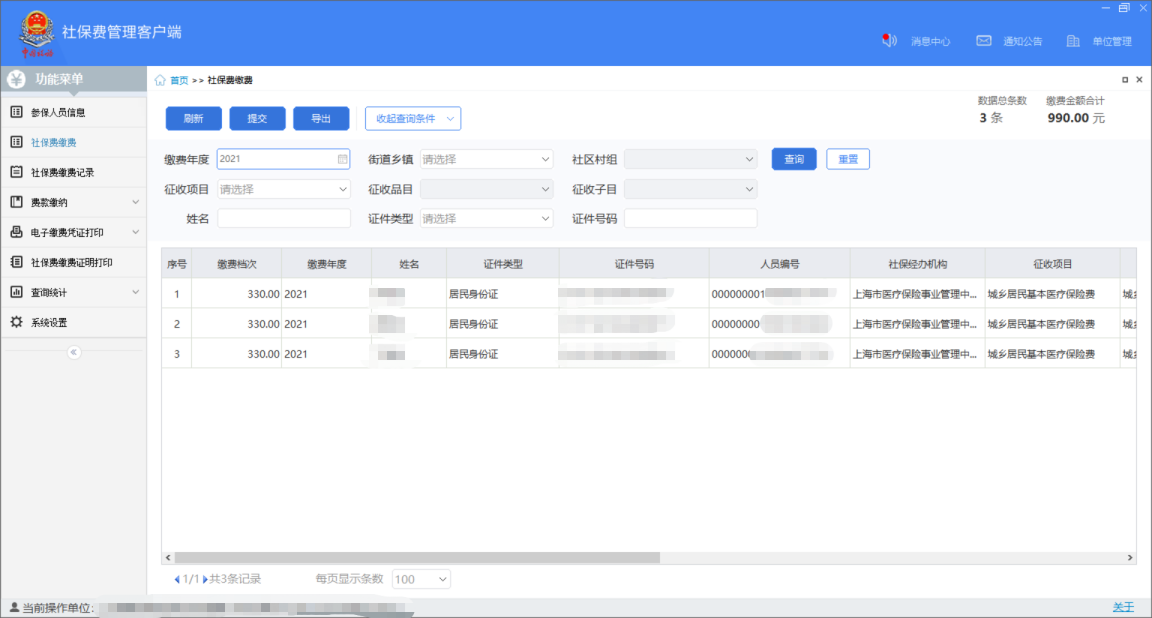 注:此处参保信息人员显示重复的可以忽略,以下一步缴费明细为准。