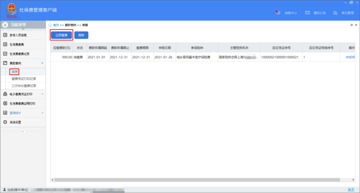 该功能用于对已申报未缴费的社保费进行费款缴纳。