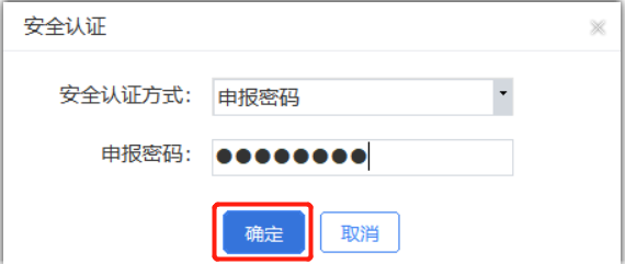 ②系统弹出如下提示,点击“确定”后输入申报密码。
