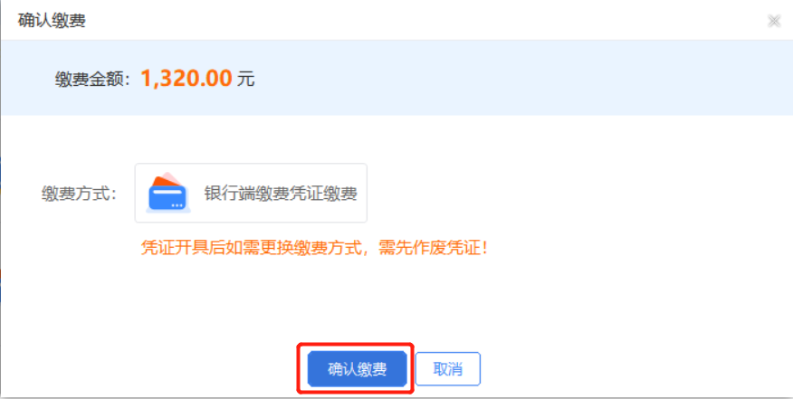 确认缴款方式和缴款金额后,点击“确认缴费”。