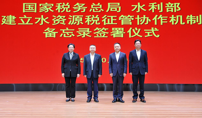 10月30日,国家税务总局、水利部在京签署《建立水资源税征管协作机制备忘录》,进一步深化两部门协作,巩固和扩大水资源税改革成果,促进水资源高效节约利用,服务保障美丽中国建设。国家税务总局党委书记、局长胡静林,水利部党组书记、部长李国英出席签署仪式。