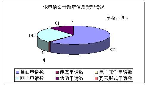 全市税务机关2011年共受理政府信息公开申请541件。其中,市局受理401件,具体包括:当面申请238件,传真申请3件,电子邮件申请1件,网上申请135件,信函申请23件,其他形式申请1件。