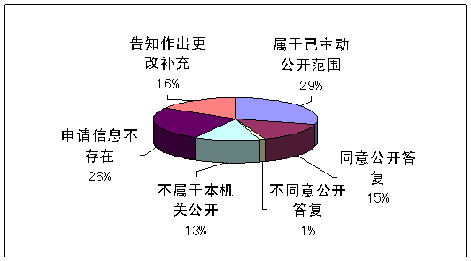 在全市税务机关答复的229件申请中,“属于已主动公开范围”67件,占总数的29.3%;“同意公开”34件,占总数的14.8%;“不同意公开”3件,占总数的1.3%;“不属于本行政机关公开”29件,占总数的12.7%;“申请信息不存在”59件,占总数的25.8%;“告知作出更改补充”37件,占总数的16.2%。