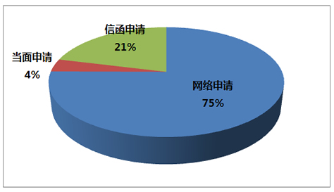 从申请渠道来看,网络申请278件,占总数的75.14%;信函申请78件,占总数的21.08%;当面申请14件,占总数的3.78%。网络申请已成为最主要的申请形式。