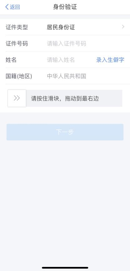 首先需要填写您的身份证件信息,填写完成后选择【通过已绑定的手机号码验证】或【通过本人银行卡进行验证】。