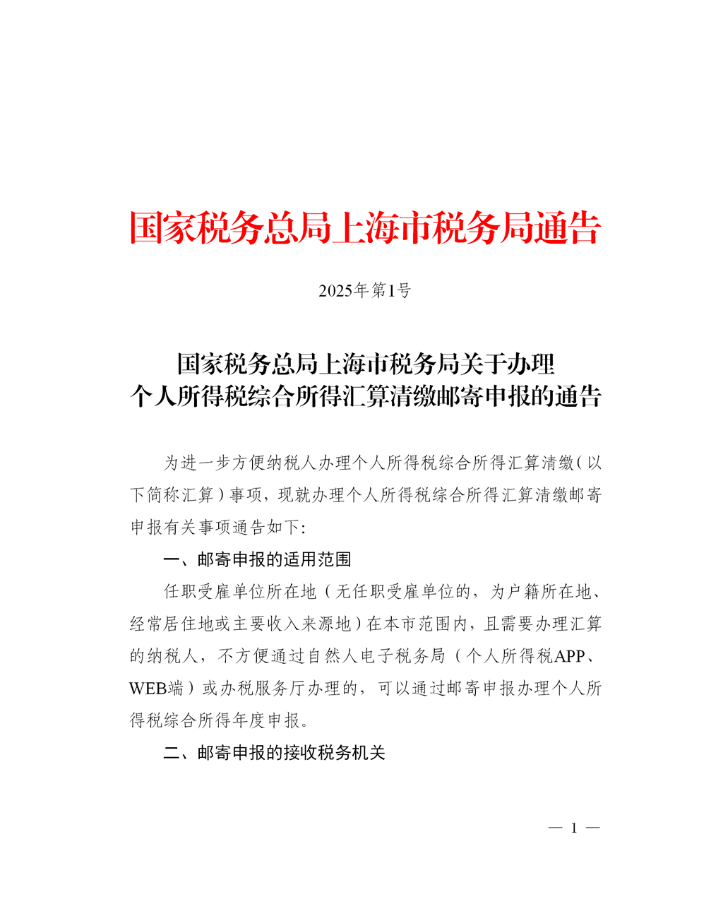为进一步方便纳税人办理个人所得税综合所得汇算清缴(以下简称汇算)事项,现就办理个人所得税综合所得汇算清缴邮寄申报有关事项通告如下: