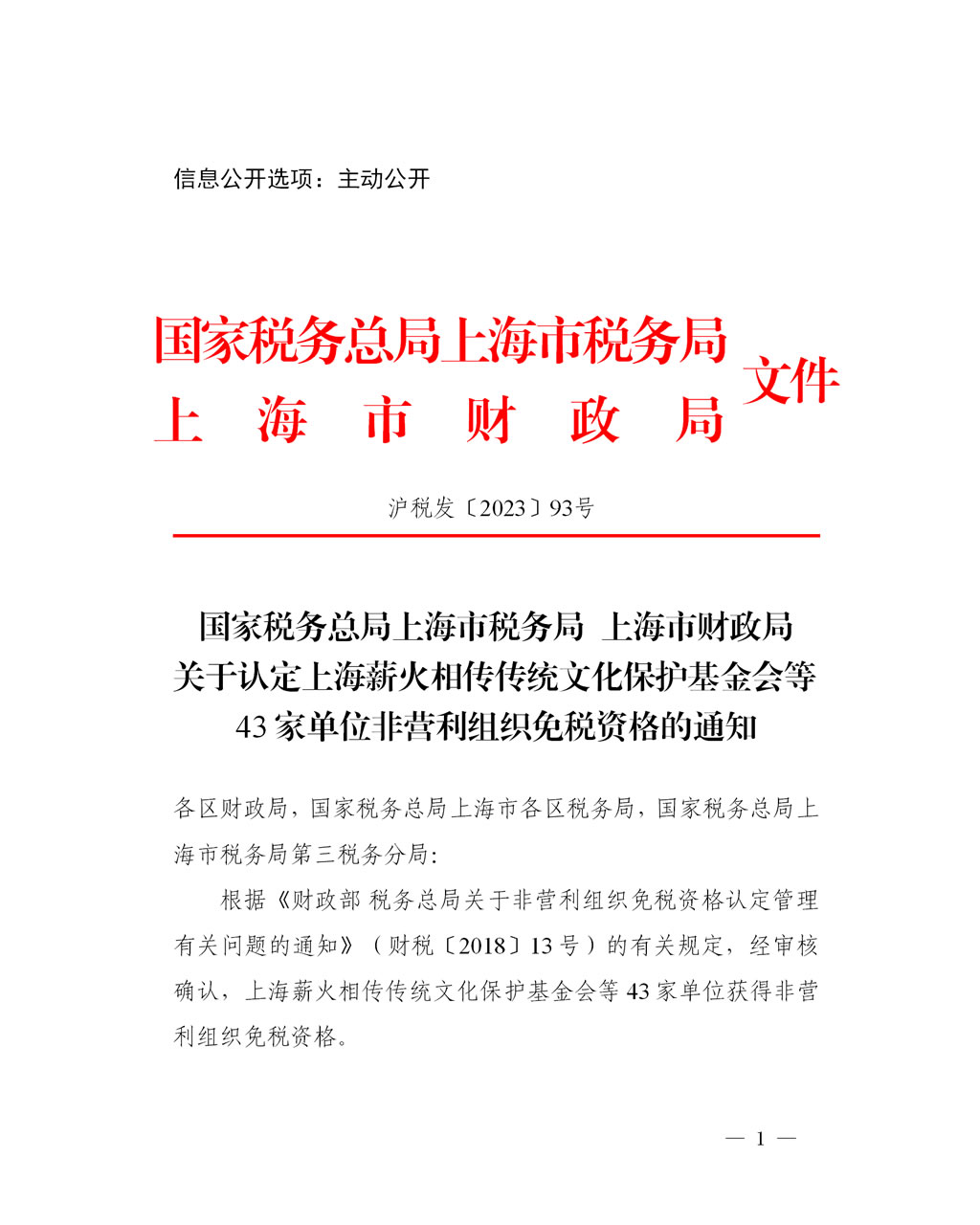 根据《财政部 税务总局关于非营利组织免税资格认定管理有关问题的通知》(财税〔2018〕13号)的有关规定,经审核确认,上海薪火相传传统文化保护基金会等43家单位获得非营利组织免税资格。