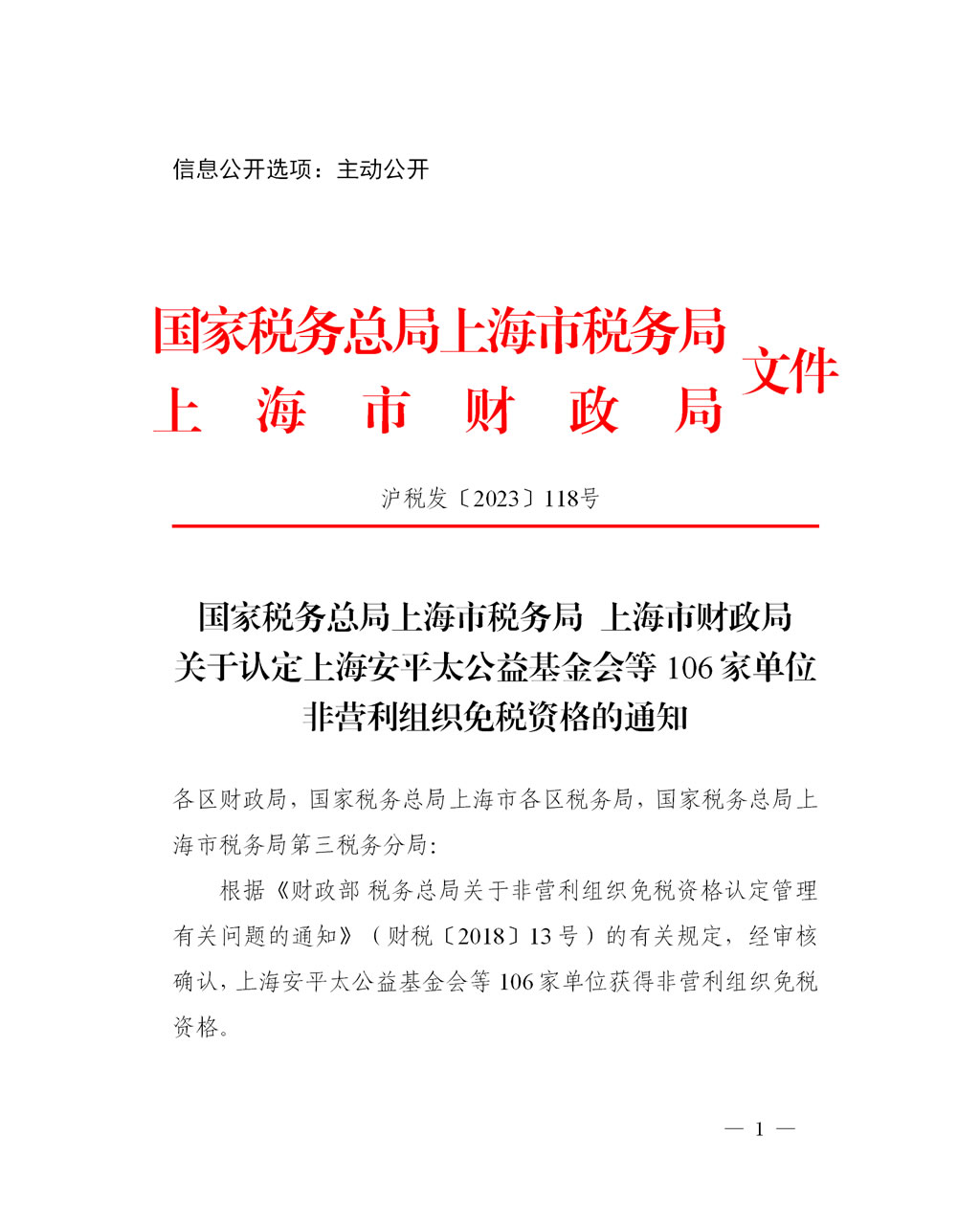 根据《财政部 税务总局关于非营利组织免税资格认定管理有关问题的通知》(财税〔2018〕13号)的有关规定,经审核确认,上海安平太公益基金会等106家单位获得非营利组织免税资格。