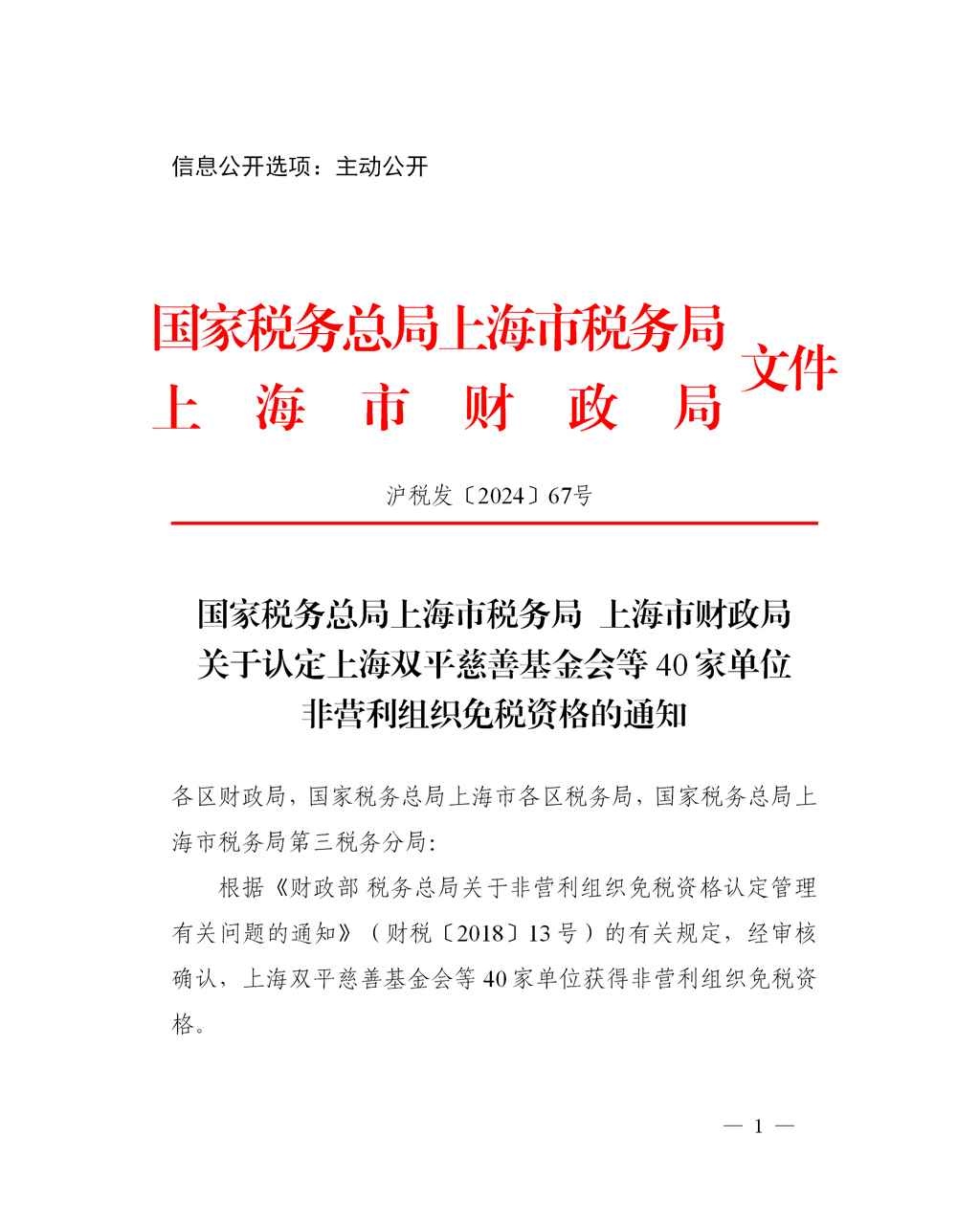 名称: 关于认定上海双平慈善基金会等40家单位非营利组织免税资格的通知