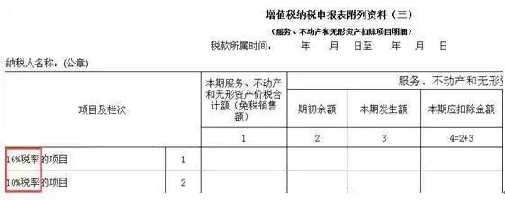 变化二:附表三的变化。附表三中的第1栏、第2栏项目名称分别调整为“16%税率的项目”“10%税率的项目”。