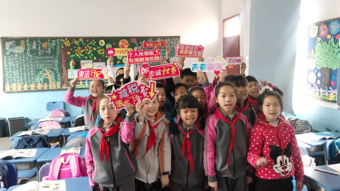 一堂妙趣横生的税法宣传课。税务干部向每个孩子分发了《税法教育读本》,并以“《税法教育读本》解读”为主题,从身边的税事说起,对什么是税,税收从哪里来、去了哪里,税收的作用等问题进行了生动讲解,引导孩子们了解税收、学习税收,建立对税收的基本认识。