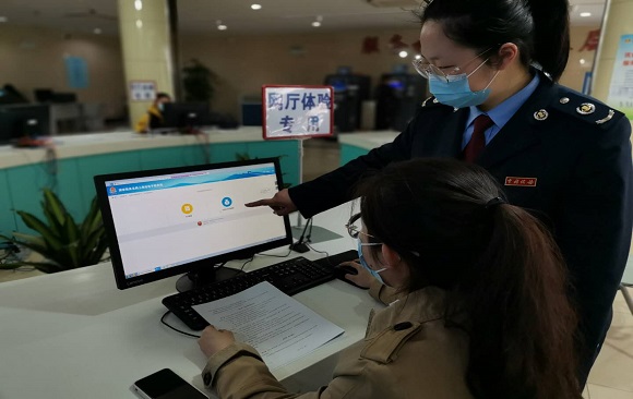 4月13日下午,前来杨浦区税务局办理代开劳务费发票业务的纳税人在工作人员的指导下,成功通过电子税务局自助完成申报并缴款。此次成功申报并缴款,是对推进“不见面”办税、“非接触式”服务的进一步探索,也是实现“涉税事项网上办”的一项新成果。
