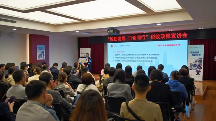 第三稽查局邀请130余家企业走进来,开展“税助发展 与食同行”税收政策宣讲会。“王泰红上海市劳模创新工作室”的税务干部向在座企业详细介绍了增值税发票的风险管理与合规使用,助力企业健康持续发展。