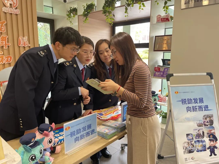 松江区税务局走进松江仓城历史文化风貌区,在仓桥老街设立税收政策咨询点,聚焦沿街商铺和往来游客的不同政策需求,分别介绍小微企业和个体工商户有关税费优惠政策,以及个税年度汇算、全年一次性奖金、个税专项附加扣除项目等有关政策,“手把手”辅导纳税人完成个税年度汇算申报等操作。