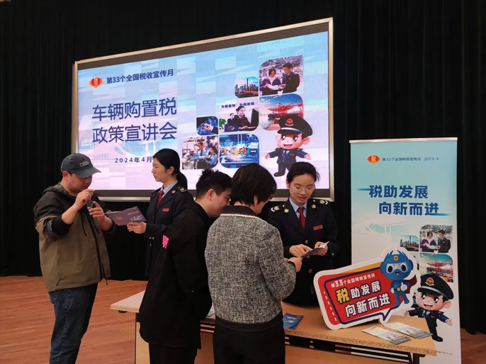 嘉定区税务局走进上海二手车交易中心,开展车辆购置税和车船税政策宣讲会。为驻场的百余家汽车销售企业提供税收政策解读和申报指南,并解答税费疑问,助力繁荣二手车市场、实现汽车消费的高质量增长,为嘉定“世界级汽车产业核心承载区”建设注入“税动力”。