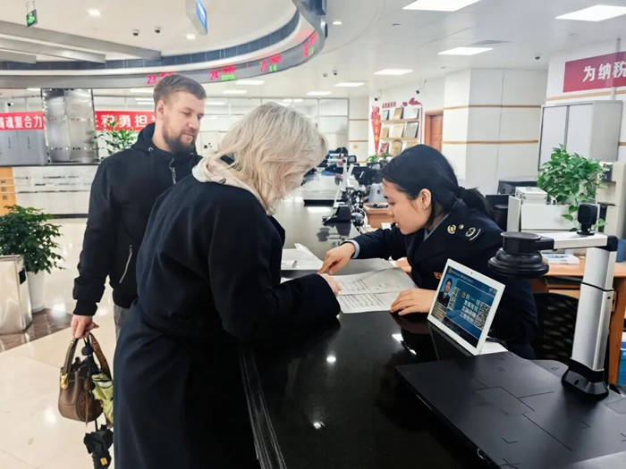 徐汇区税务局税务干部精准高效地为外国纳税人辅导私房出租代开发票业务,用专业与温度开启新一年税务新征程。