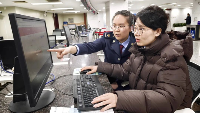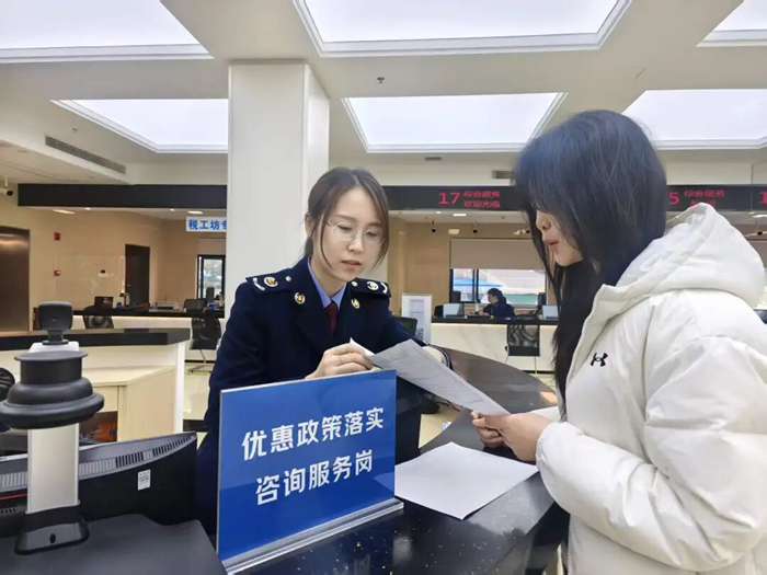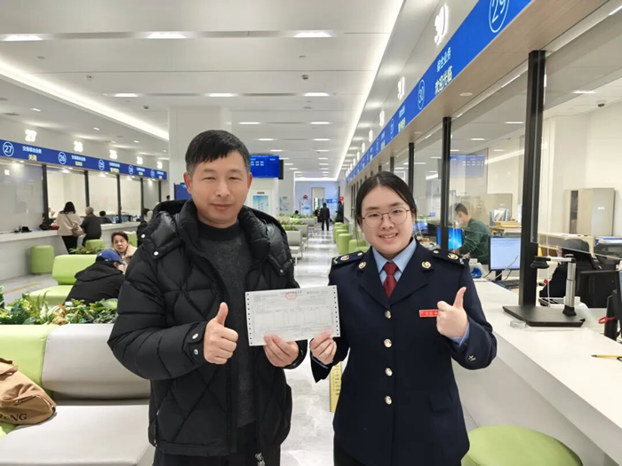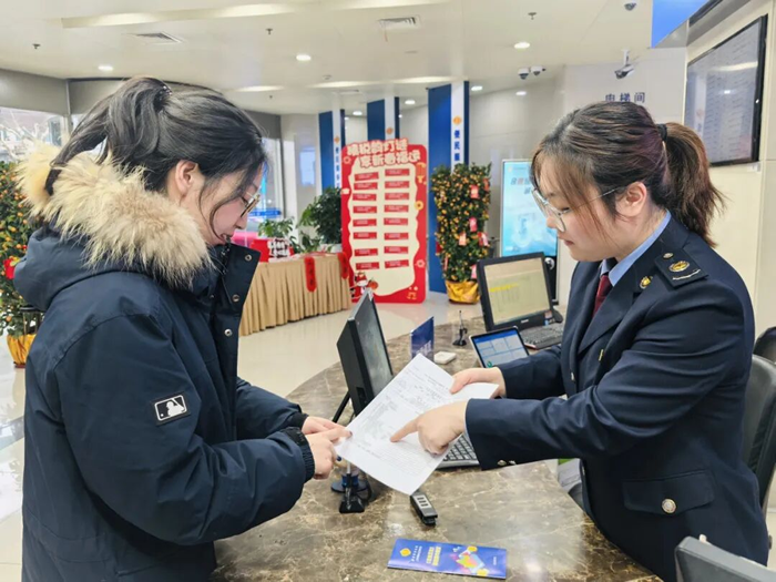 普陀区税务局税务干部以满格状态投入到新一年的工作中。税务干部主动靠前,为纳税人缴费人细致解答个人房产交易涉税疑问,并高效完成业务办理,展现税务专业与服务温度,获纳税人缴费人点赞。