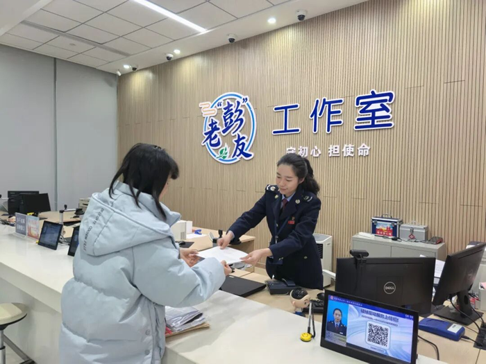 奉贤区税务局税务干部迅速从节日氛围切换至工作状态,以饱满的工作热情接待前来老彭友工作室咨询的纳税人缴费人,为纳税人缴费人提供高效便捷的办税服务。