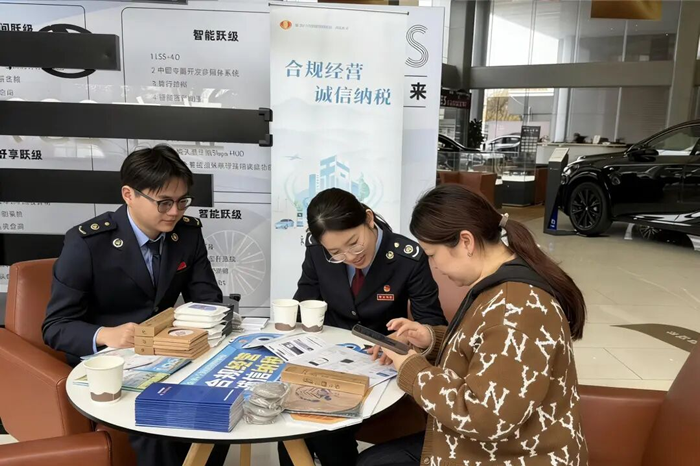 嘉定区税务局走进辖区内各车企门店,面向汽车经营者及购车群众,开展车辆购置税法政策宣讲、网上申报操作指引。有效打通政策落地“最后一公里”,进一步增强纳税人缴费人诚信纳税意识。