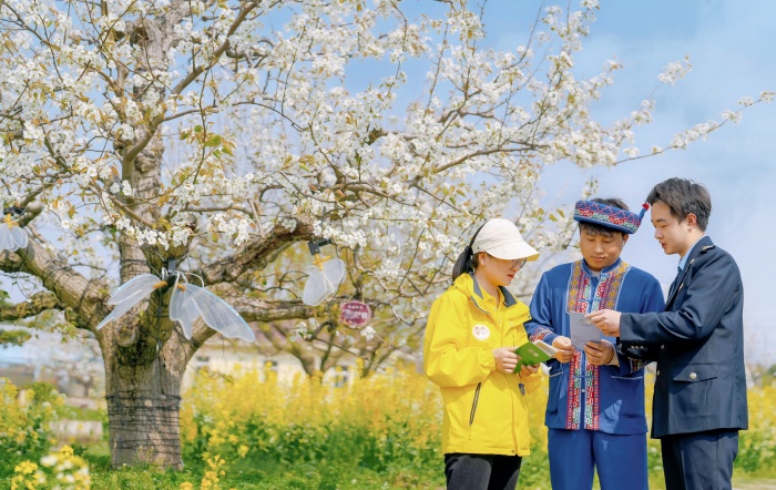 活动期间,税务干部主动向络绎不绝前来观赏梨花的游客们送上税收宣传手册,为每一位游客耐心细致讲解个人所得税综合所得年度汇算的相关政策、日常消费中涉及的税收小知识等,让游客在享受自然美景的同时,也能学到税收知识。税务干部也与前来梨花节商圈的商户们亲切交谈,结合具体税费实例,深入浅出地讲解合规经营的重要性,强调依法纳税不仅是公民的责任,更是维护市场秩序、促进社会公平的关键。