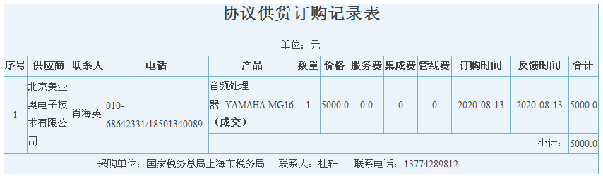 中央国家机关政府采购协议供货合同GC-HG110397-20-08-13-6345