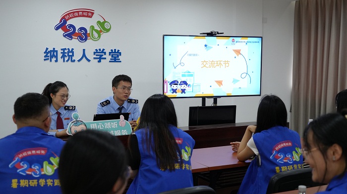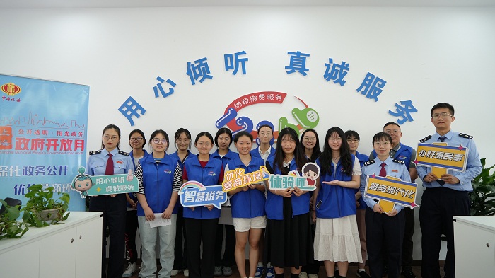 近日,松江区税务局开展政府开放月“云听·税务蓝”暑期研学实践活动,邀请区内大学生零距离体验12366纳税缴费服务热线日常工作。