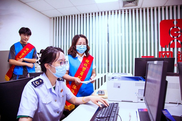 活动中,体验官走进长三角示范区24小时自助服务厅,观摩示范区三地政务服务地图,了解一体化涉税办理流程,并依托双屏互动办税终端,在上海市开办企业“一窗通”网上服务平台发起了新办企业的开业信息登记,一站式完成相关业务。