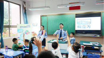 在团市委的牵头下,“爱心暑托班”在各项市府实事工程中一直是广受欢迎的项目之一,今年区局团委再次精心组织,2018届全体新进公务员们积极参与其中,结合“税立方”品牌,走进“爱心暑托班”针对孩子们的年龄段开展特殊的“纳税人学堂”授课。
