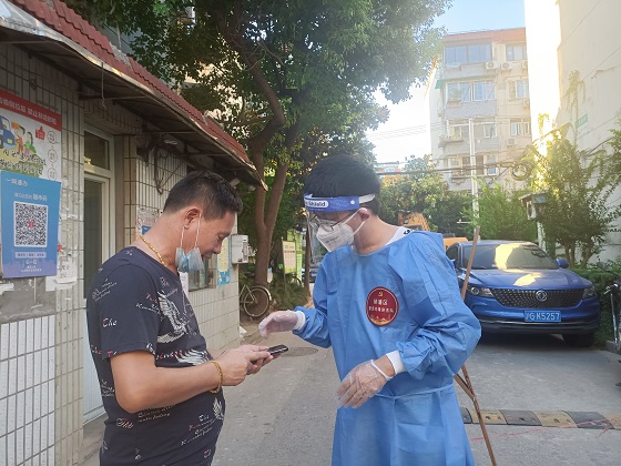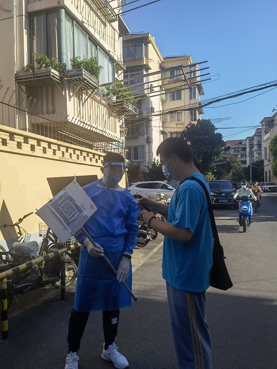 曹金林同志作为领队,主动提前与街道沟通,了解每位志愿者所在点位,做好协调沟通工作,他将此前志愿服务的经验进行总结,并传授给其他志愿者,不断提醒大家在志愿服务的同时也要做好个人防护。他说:“当兵有兵样,当志愿者就得有志愿者的样子!我们退伍转业时讲过‘若有战,召必回’,现在组织需要我们支援,我们义无反顾冲在一线!”