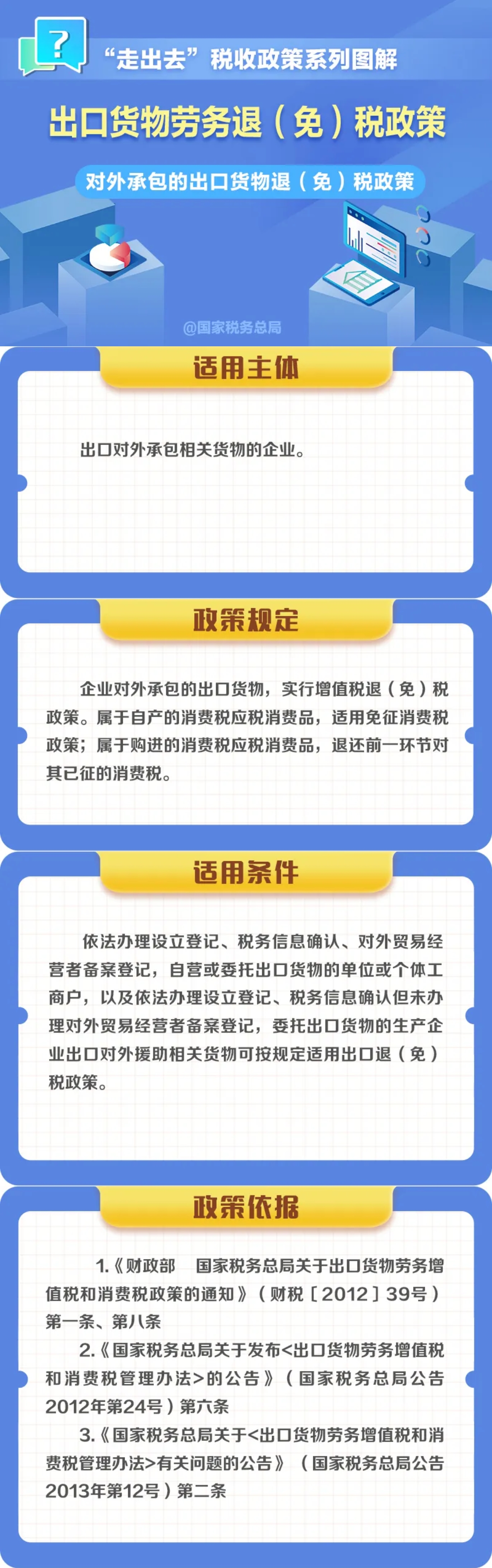 对外承包的出口货物如何享受退(免)税政策?戳图了解