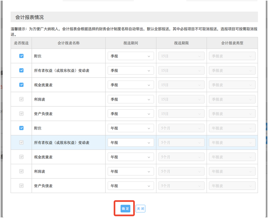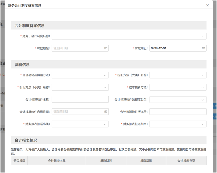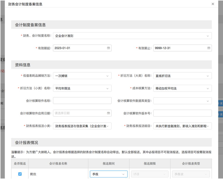3.财务报表备案时“财务、会计制度名称”需要和“财务报表报送小类”相对应;