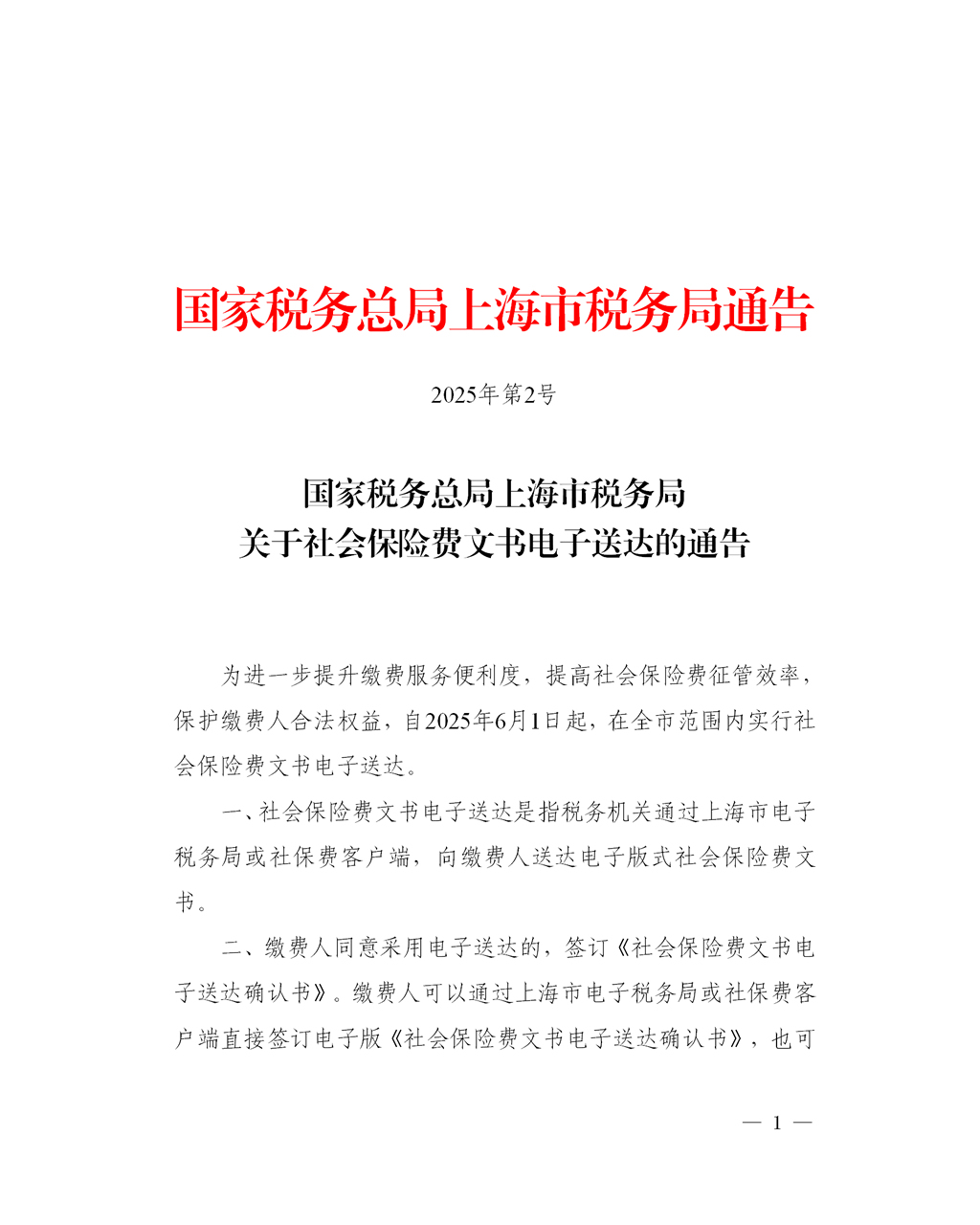 为进一步提升缴费服务便利度,提高社会保险费征管效率,保护缴费人合法权益,自2025年6月1日起,在全市范围内实行社会保险费文书电子送达。